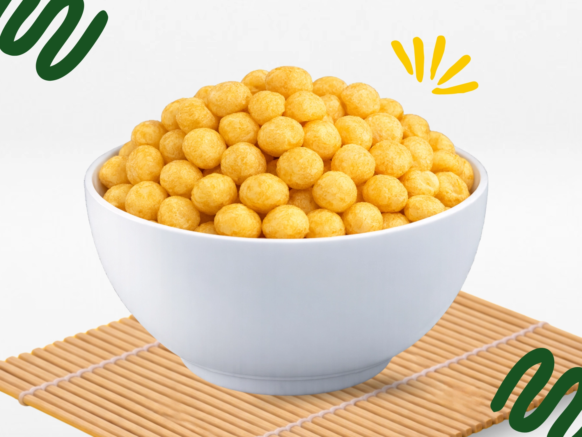 Our puffs typically provide 9.5g to 16g of protein per 100g, while products made with protein isolates can go up to 22–24g of protein per 100g, making them a great addition to a nutritious snacking range.