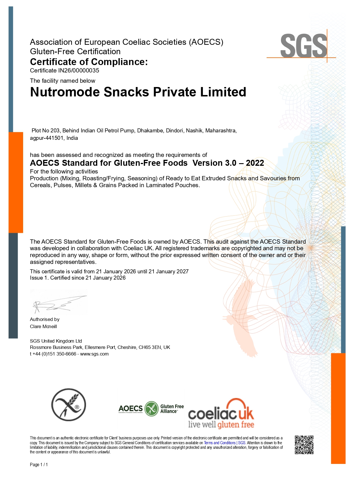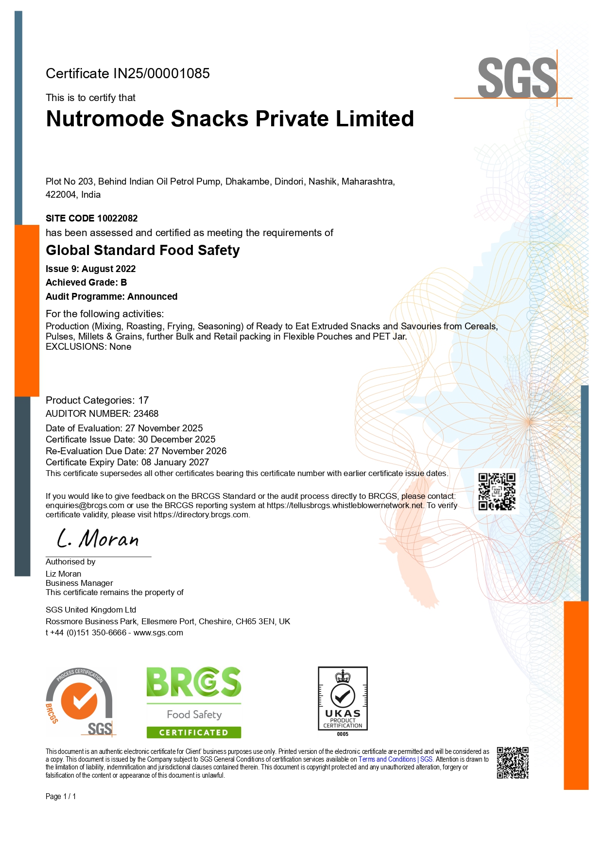 We are currently undergoing gap audits and expect to receive our BRC and Gluten-Free certifications by December 2025. These will reinforce our quality, safety, and compliance standards for global supply chains.